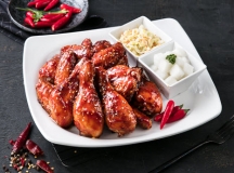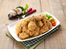A Light flaky texture with a Soy Garlic glaze.(This glaze contains peanut oil)